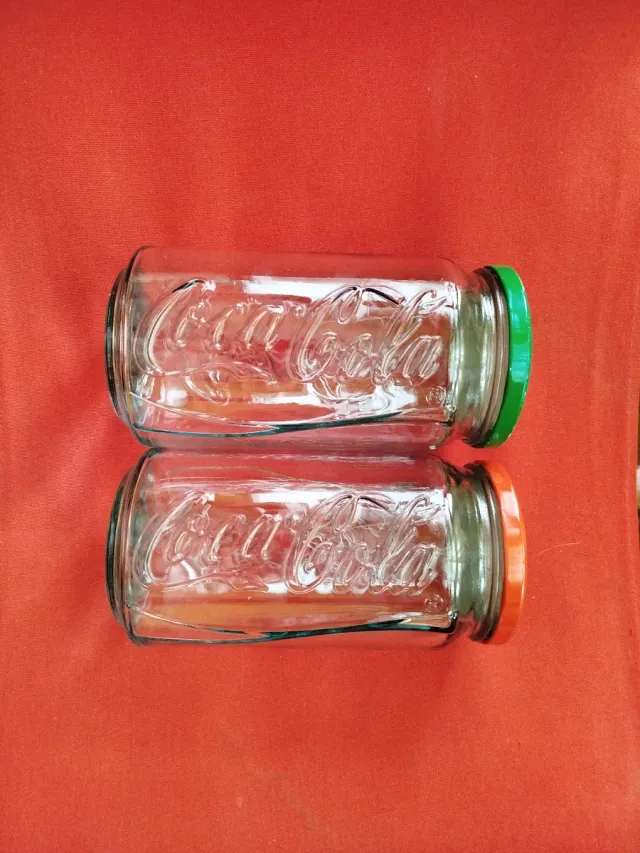 Dettagli del prodottoSet di due barattoli Coca Cola in vetro dal design vintage.