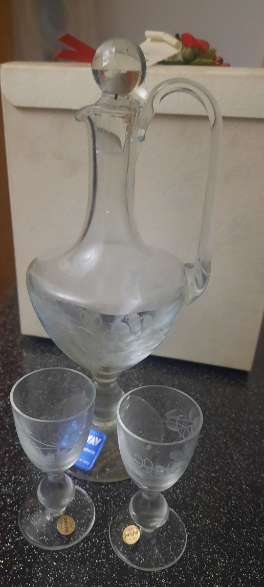 Bottiglia + 2bicchieri Cristalleria Vav.