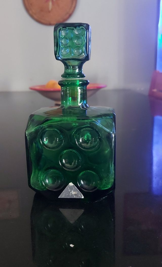 Bottiglia Decanter Verde Vetro Empoli Stile Dadi Vintage anni 60 /70