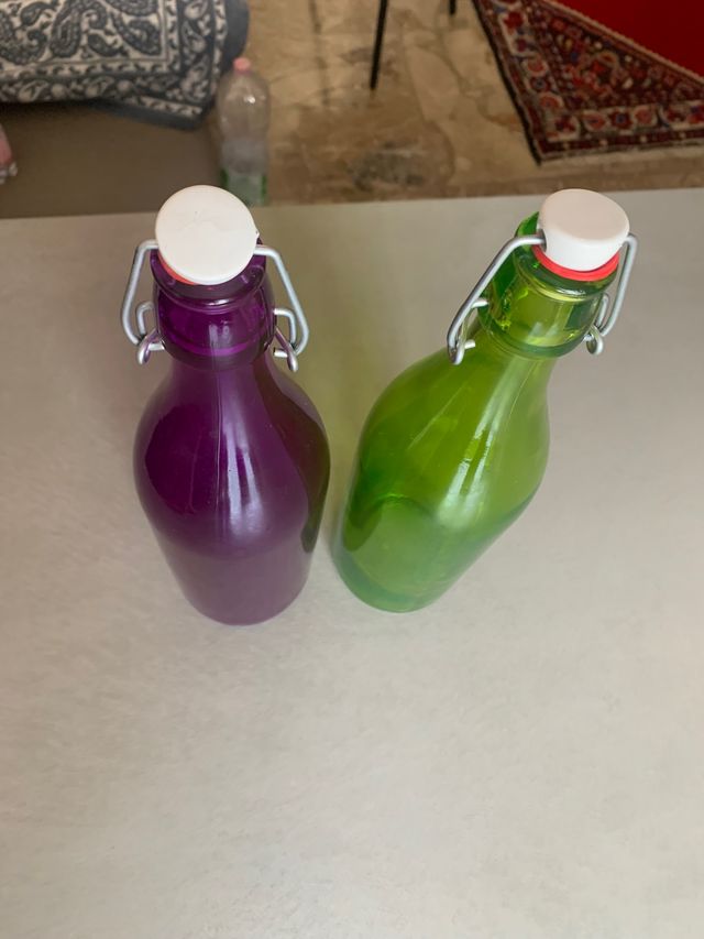 Coppia di bottiglie vintage colorate da 1 litro