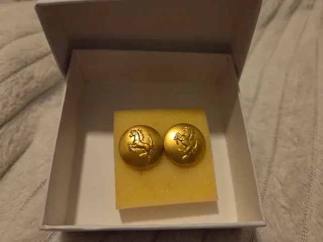 Eleganti bottoni per camicia con il simbolo del Cavallino Rampante Ferrari. - Design dorato. - Simbolo Ferrari inciso.