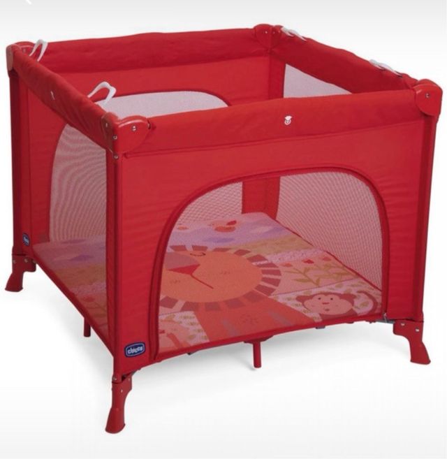 Box gioco Chicco di colore rosso, ideale per far giocare i più piccoli in sicurezza. - Struttura in tessuto resistente. - Rete traspirante sui lati. - Praticamente nuovo