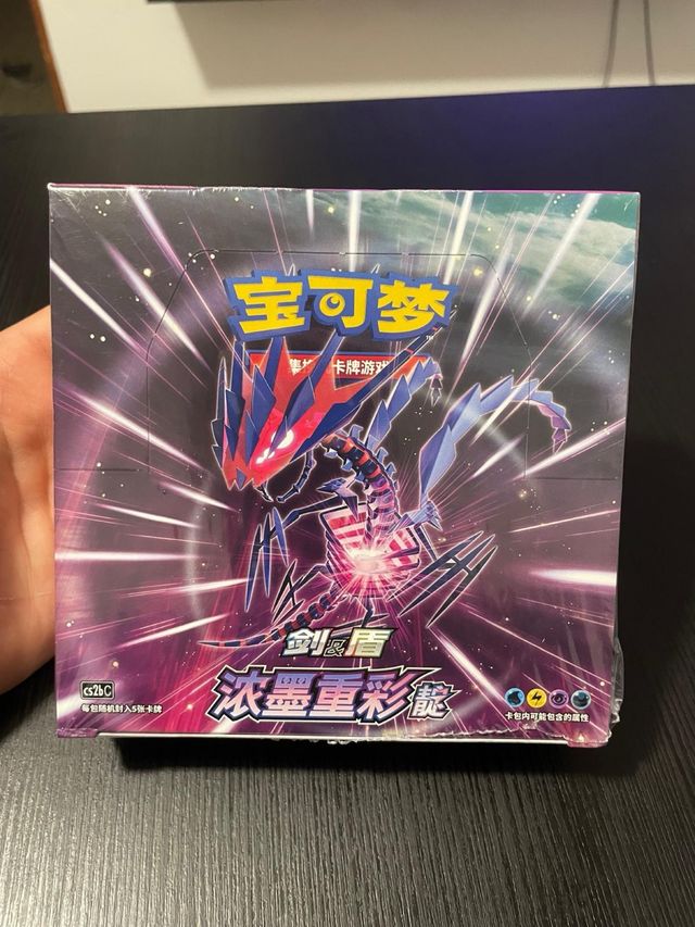 Box di carte Pokémon Spada e Scudo, edizione Tesori Sfavillanti. - Contiene 5 carte per busta. - Illustrazione con Pokémon Koraidon e Miraidon.