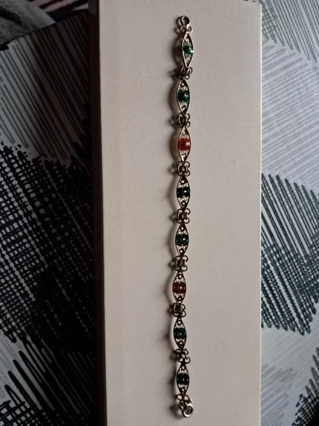 Bracciale Argento Pietre Verdi e Rosse