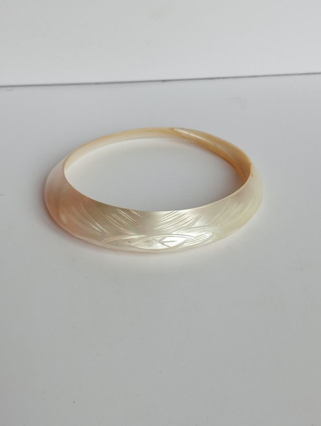 Bellissimo bracciale rigido in madreperla con incisioni, diametro cm.7