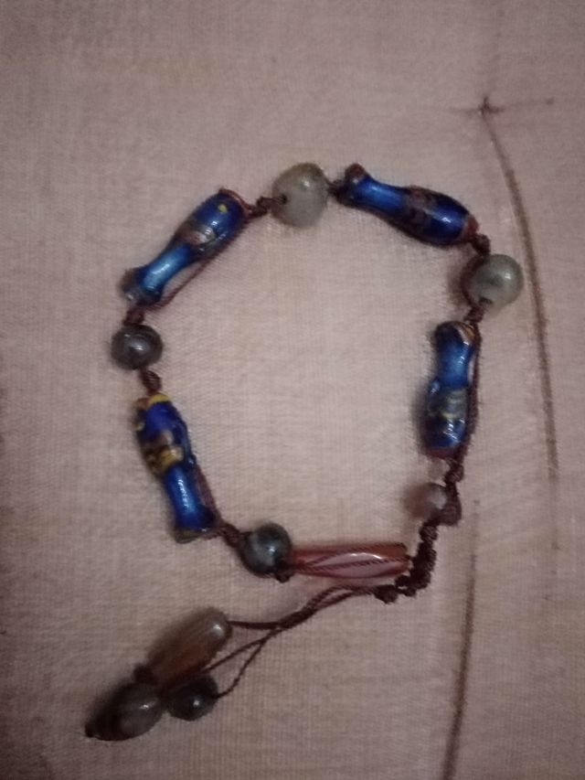 Braccialetto con pietre colorate a forma di pesciolini Lunghezza 23 cm. Chiusura a bottoncino.