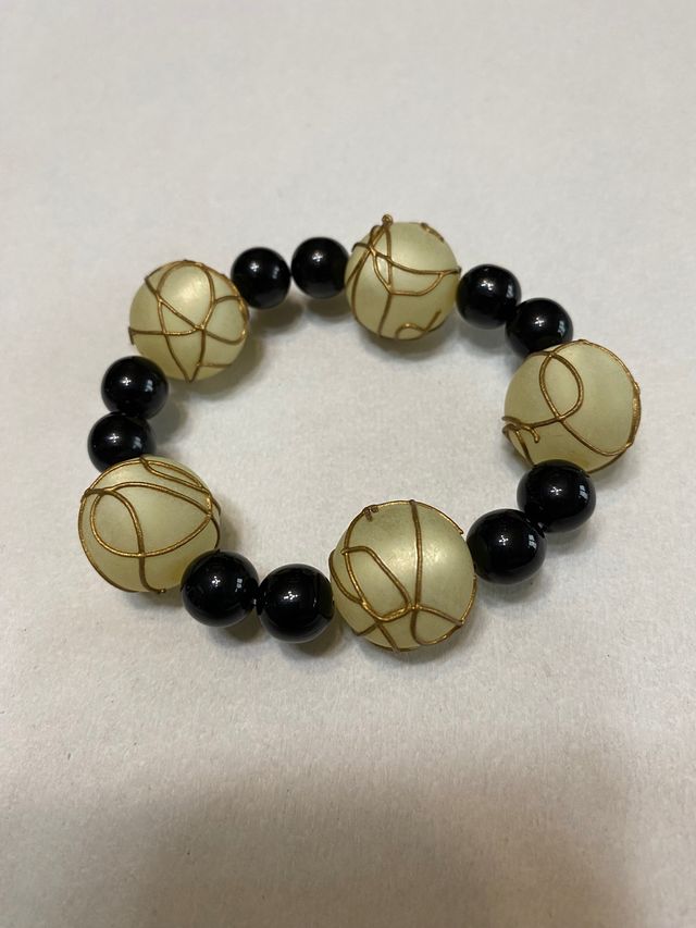 Braccialetto elastico realizzato a mano in ceramica nera e resina dorata
