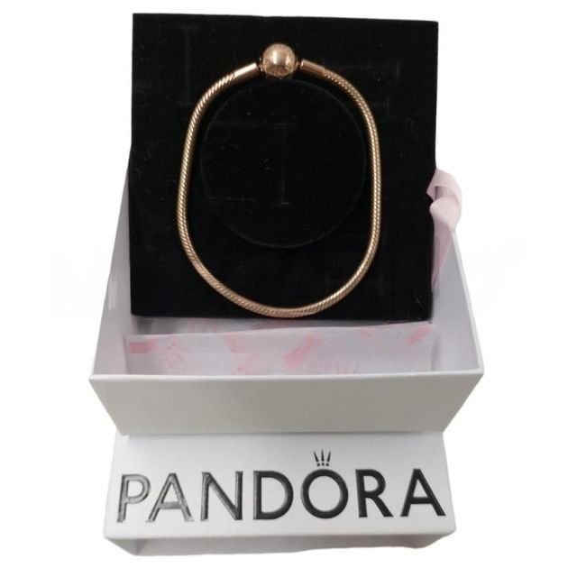 BRACCIALETTO FIRMATO PANDORA IN MAGLIA SNAKE E CHIUSURA A SFERA COLOR RAMATO LUNGHEZZA 20 CM