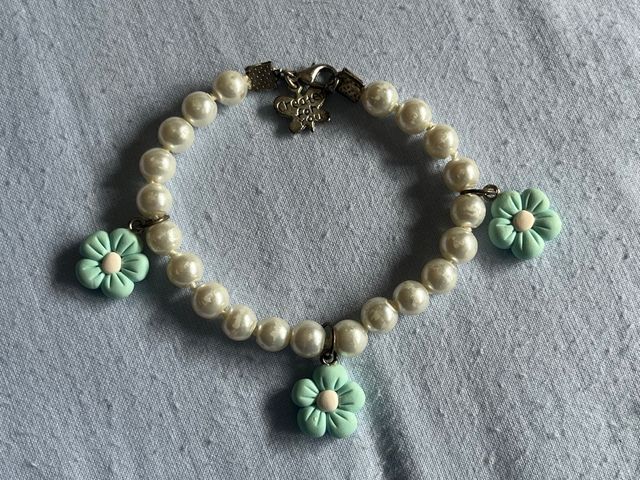 Braccialetto perle e fiori fimo handmade bijoux fatto a mano