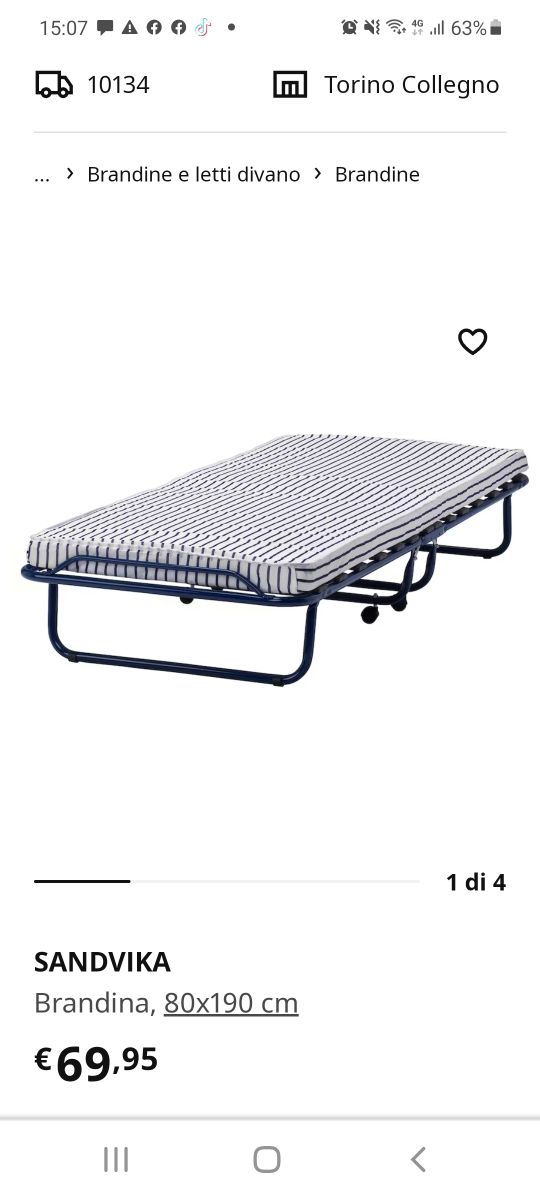 brandina letto singolo pieghevole.