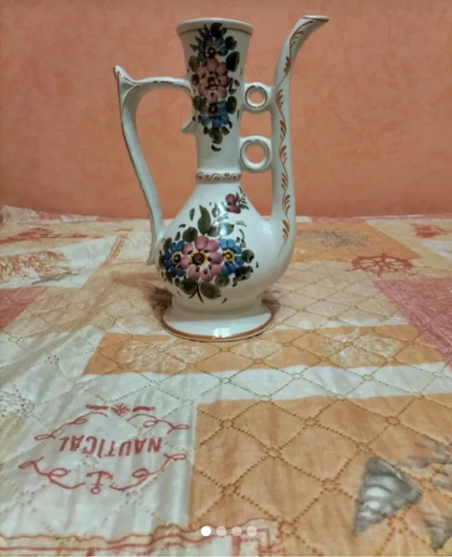 Bellissima brocca in ceramica italiana, decorata a mano con motivi floreali. - Design unico e colorato. - Marchio Il falco inciso.