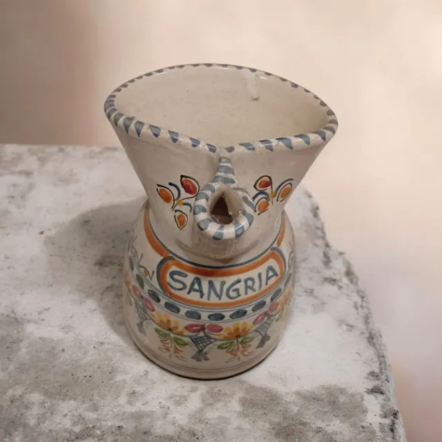 Dettagli del prodottoBrocca in ceramica decorata a mano, ideale per servire la sangria. Un pezzo unico che aggiunge un tocco artistico alla tua tavola.