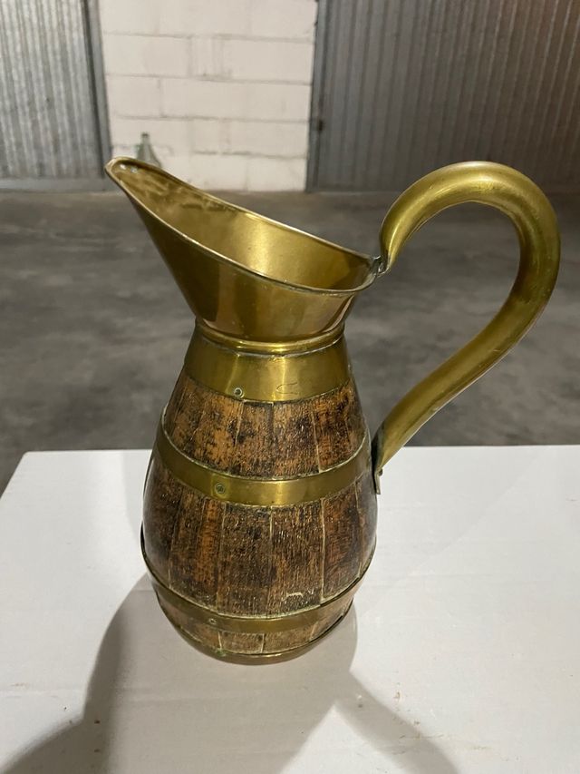 Dettagli del prodottoElegante brocca con finitura in legno e dettagli in ottone, che ricorda lo stile di una botte.