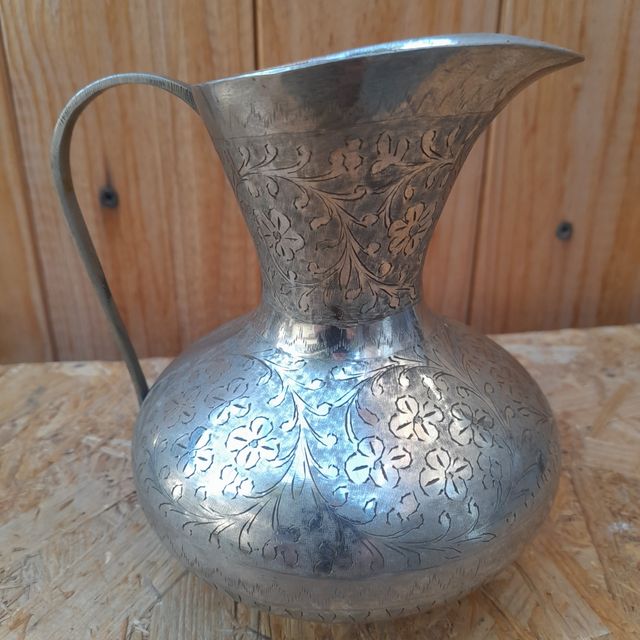 Dettagli del prodottoBellissima brocca vintage in metallo, perfetta per aggiungere un tocco di charme retrò alla tua casa.