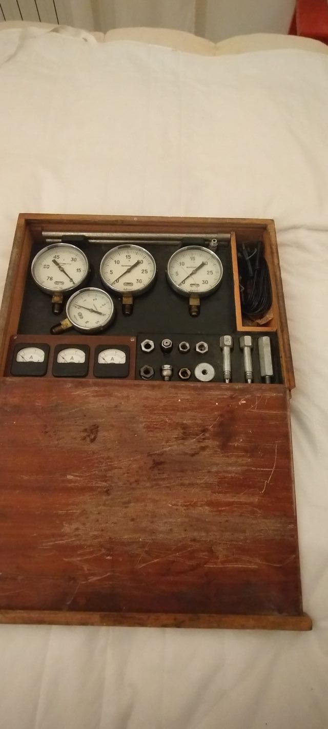 cofanetto bruciatore manometro completo due vetri scheggiati completo con istruzioni anni 60 vintage Riello