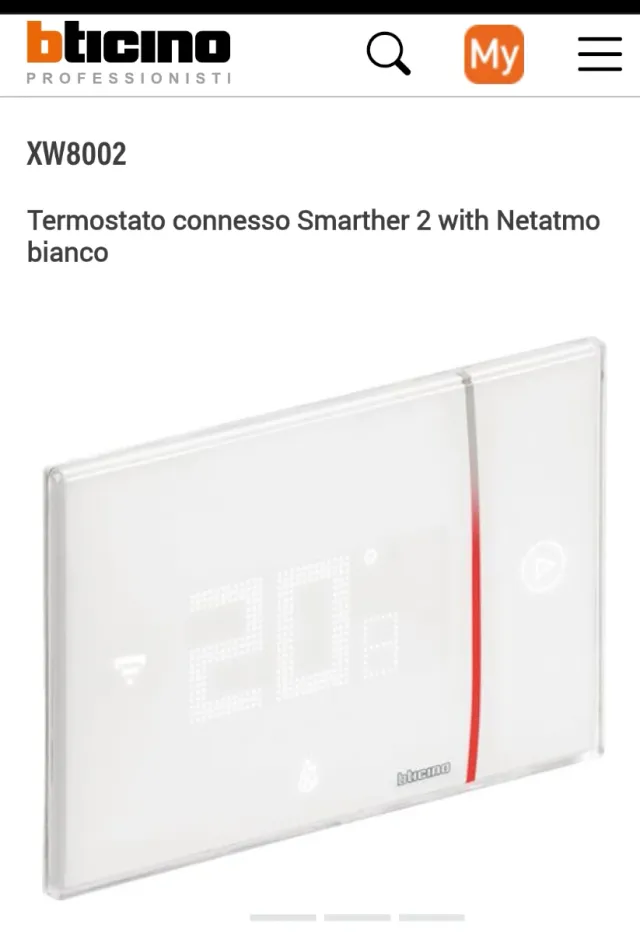 Termostato connesso Bticino Smarther 2 con Netatmo, colore bianco. Ancora con la pellicola - Design moderno e minimalista. - Display digitale integrato.