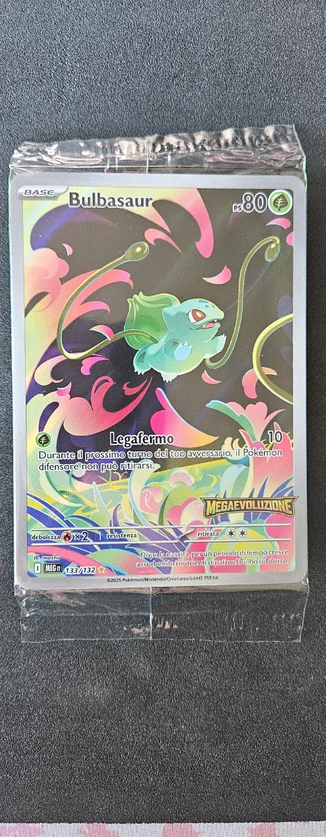 Dettagli del prodottoCarta Pokémon di Bulbasaur, edizione stamped di megaevoluzione.