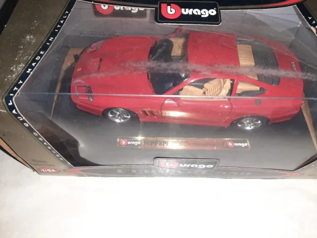 Modellino Burago Ferrari in scala 1:24, realizzato in Italia. - Colore rosso. - Interni color sabbia. - Dettagli fedeli all'originale.