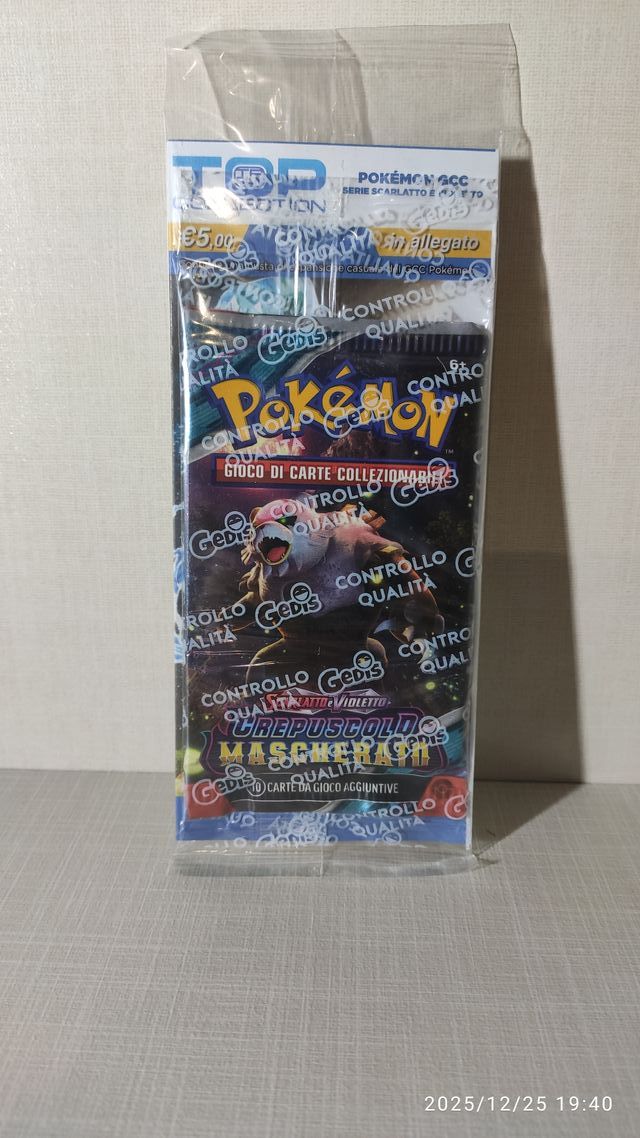 Metto in vendita 1 bustina di Pokémon Crepuscolo Mascherato. La bustina è nuova e sigillata, in condizioni impeccabili.
