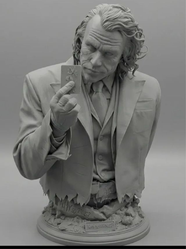Busto del Joker, stampato in 3D, alto 25 cm. Un pezzo da collezione dettagliato. - Altezza: 25 cm - Materiale: Resina (stampa 3D) - Design ispirato al Joker