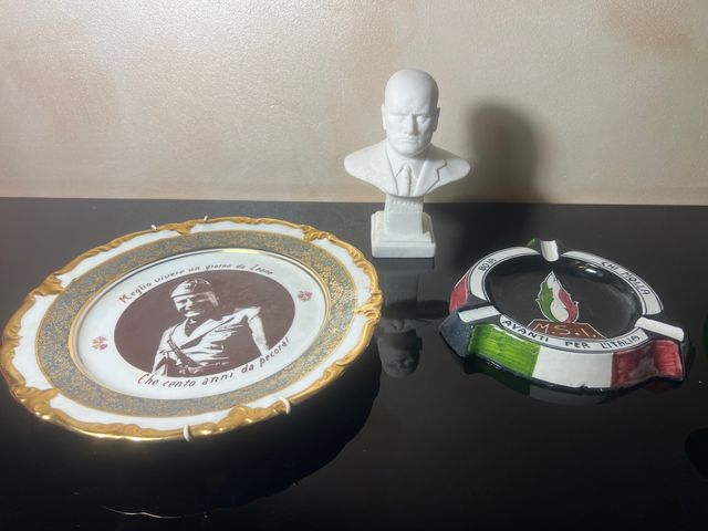 Dettagli del prodottoCollezione di oggetti a tema Mussolini e MSI.