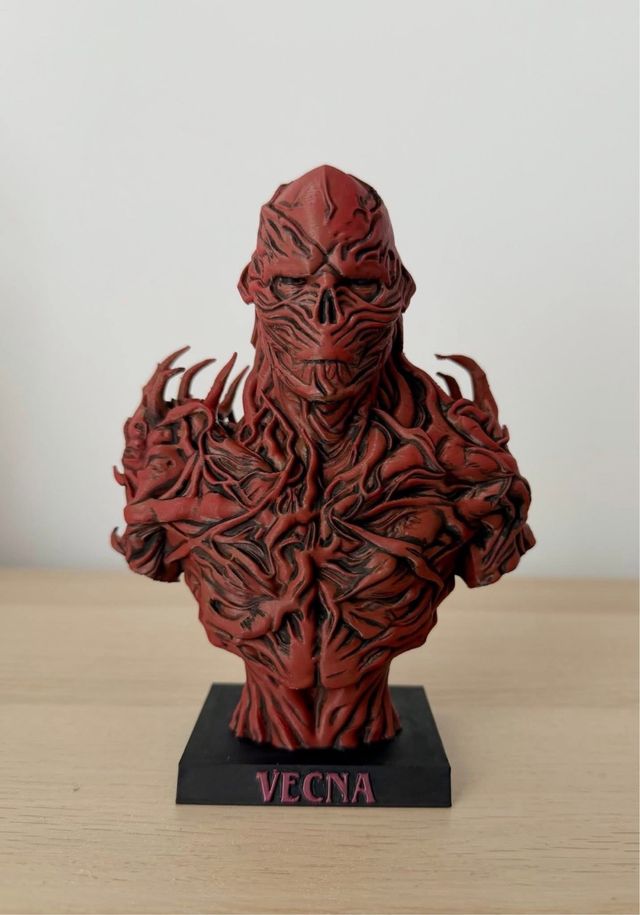 Busto di Vecna, ispirato alla serie Stranger Things. - disegna intricato e relaistico. - Base nera con nome in rosso. - Dipinto a mano