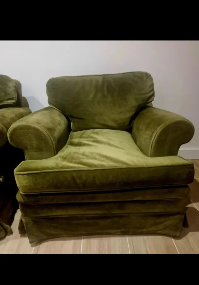 Poltrona vintage in velluto verde oliva