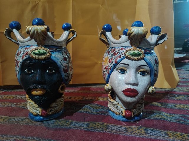 cabezas de morenos en ceramica de Caltagirone. lindas demasiado . colores de mediteraneo arabesque. medita altura cm 30.