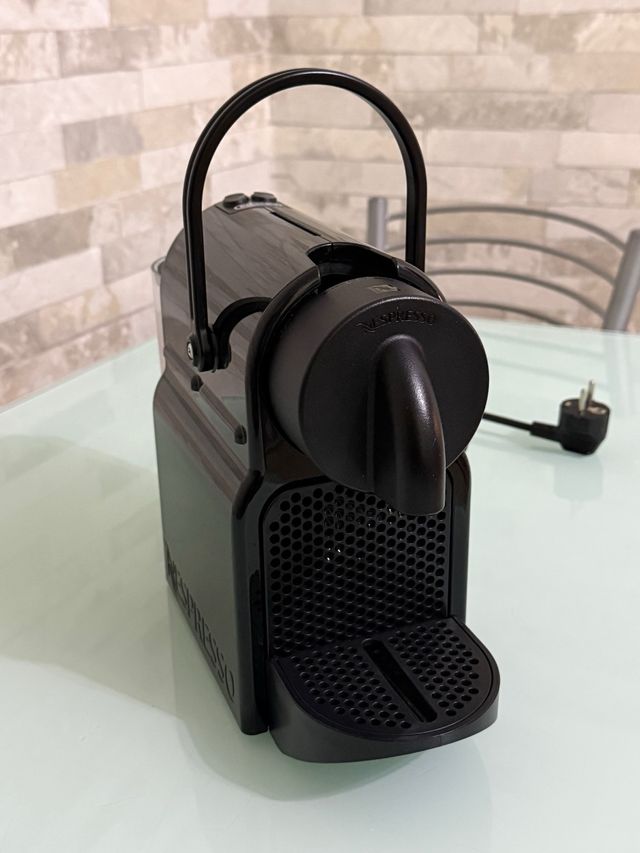 Dettagli del prodottoMacchina da caffè Nespresso del marchio DeLonghi in colore nero. Design compatto ed elegante. Maniglia superiore per facilitare il trasporto. Vassoio raccogli gocce estraibile. Utilizzo molto limitato. La descrizione è stata tradotta automaticamente.Misure del prodotto