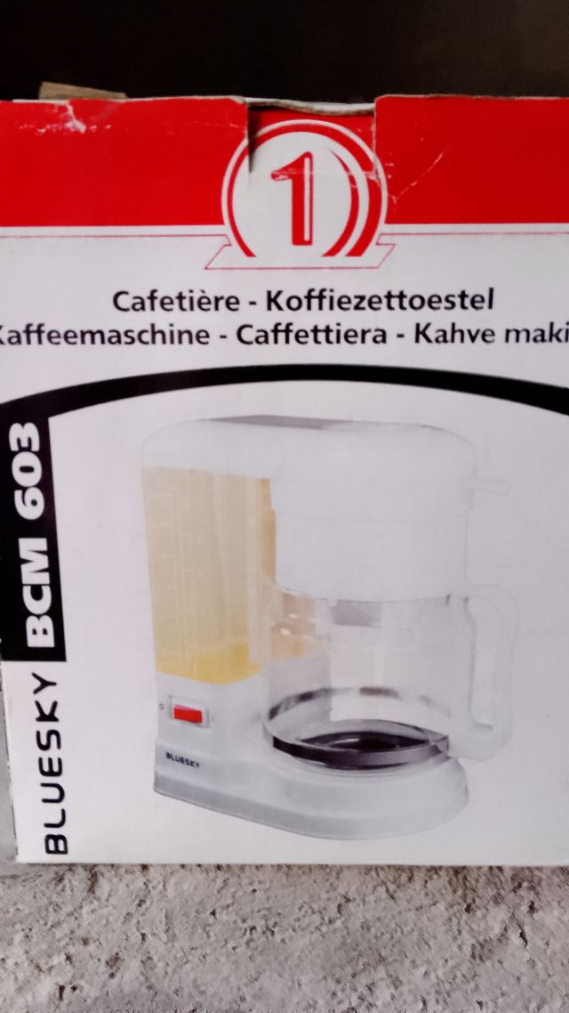 Dettagli del prodottoCaffettiera americana BlueSky BCM 603, in confezione originale. Perfetta per iniziare la giornata con un buon caffè!