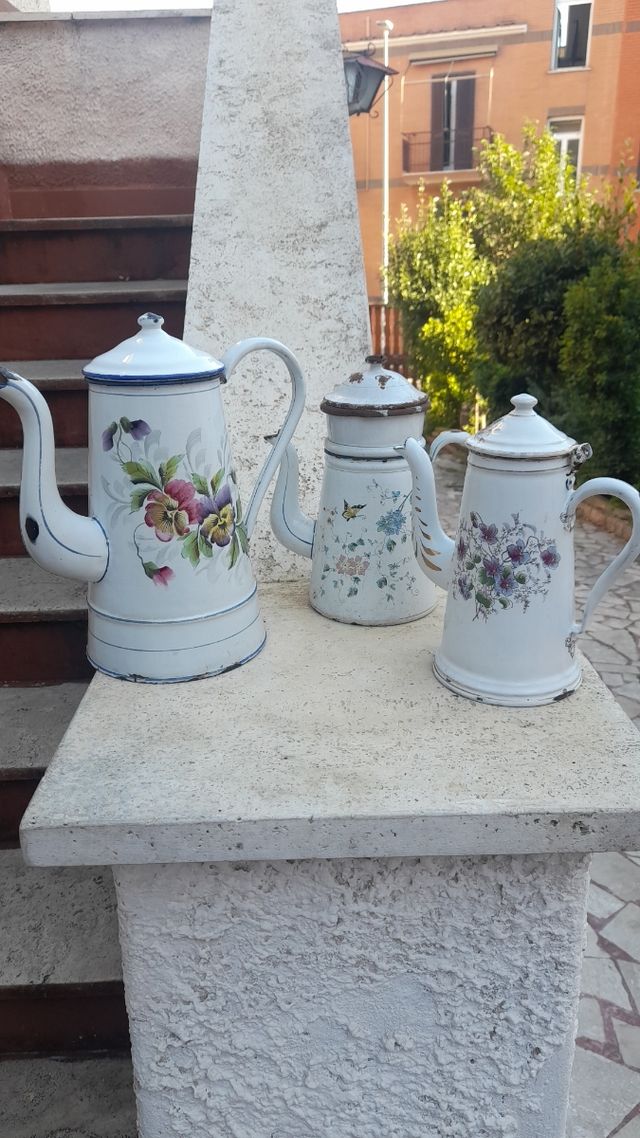 Dettagli del prodottoCaffettiere smaltate vintage brocante con segni del tempo e di vita vissuta da collezione e da esporre non utilizzabili il prezzo è per 2 caffettiere PREZZO FISSO LE FOTO FANNO PARTE DELLA DESCRIZIONE sono 2 quella al centro non è disponibile.
