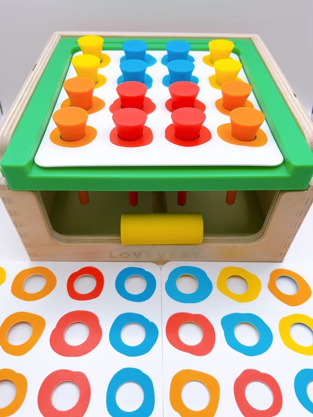 Un juego con el que golpear con fuerza las clavijas para que encajen en los colores correspondientes.