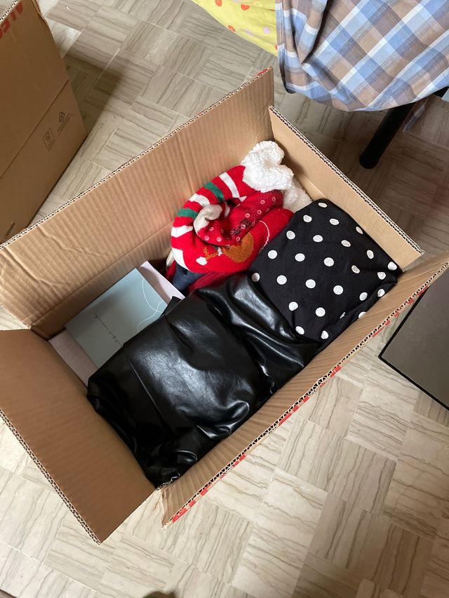 caja con ropa de segunda mano mujer