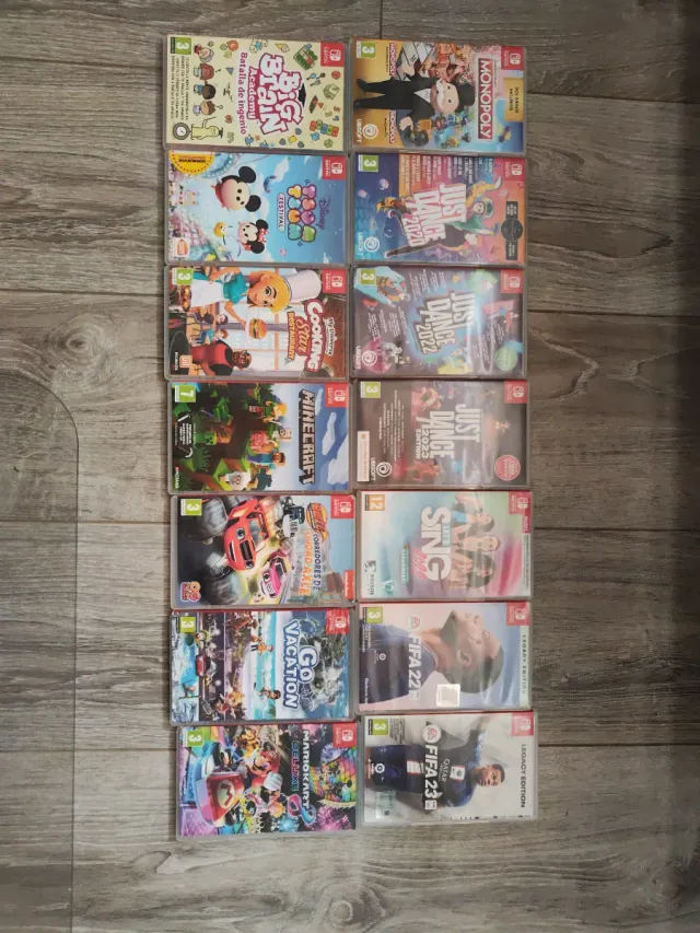 Dettagli del prodottoIn vendita 14 scatole vuote di vari giochi per Nintendo Switch. Ideali per completare la tua collezione o per conservare i tuoi giochi. - Monopoly - Big Brain Academy: Battaglia di ingegno - Disney Tsum Tsum Festival - Cooking Mama: Cookstar - Minecraft - Blaze e le Mega Macchine: Corridori di Città - Go Vacation - Mario Kart 8 Deluxe - Just Dance 2020 - Just Dance 2022 - Just Dance 2023 Edition - Let's Sing Queen - FIFA 22 Legacy Edition - FIFA 23 Legacy Edition La descrizione è stata tradotta automaticamente.