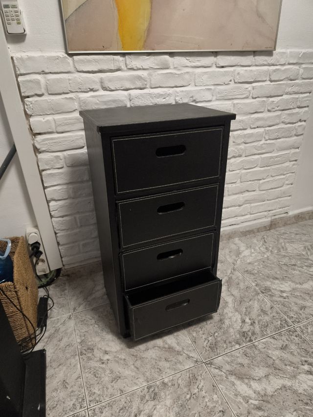 Cassettiera nera in legno e pelle
