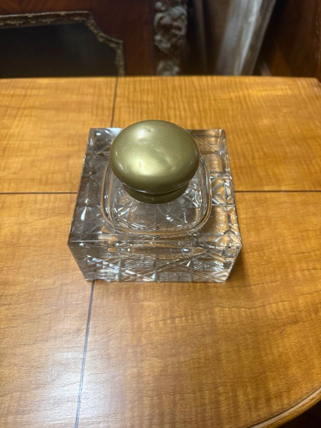 Calamaio in cristallo con tappo dorato