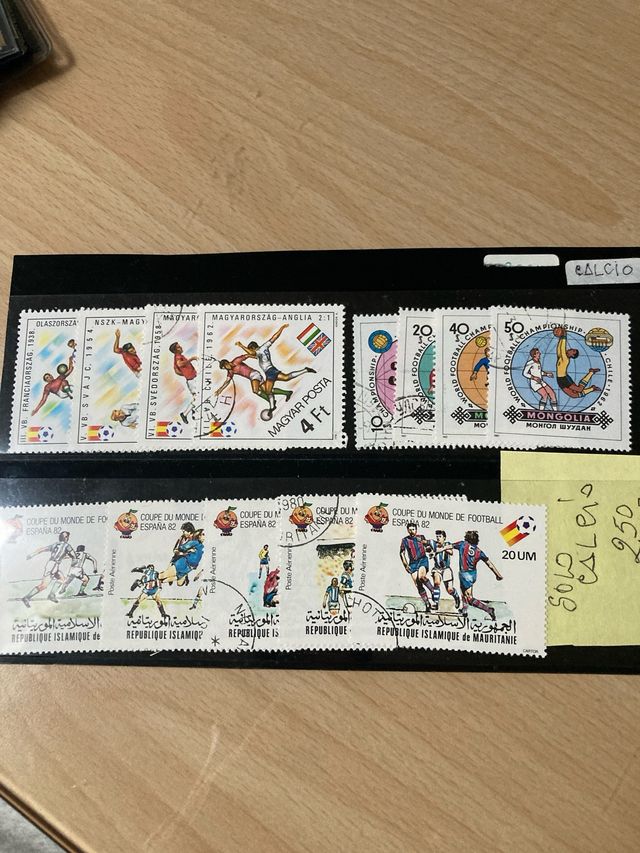 francobolli tema Calcio tre serie Ungheria, Mauritania, Mongolia tutti timbrati e perfetti da collezione.
