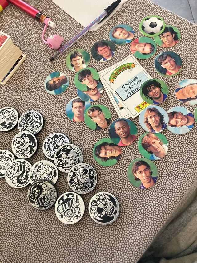 Collezione di calciatori Panini. - Calciatori Panini Calcio Stars. - Include 22 caps compreso un pallone e 12 slammer. - Ottimi per collezionisti.