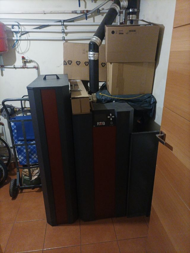 Dettagli del prodottocaldaia a pellet con scarso utilizzo grazie all'energia aerotermica e ai pannelli solari, vengono venduti tutta la caldaia, il serbatoio di accumulo e il compressore La descrizione è stata tradotta automaticamente.