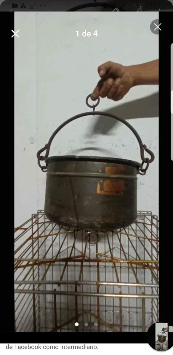 Antico calderone di rame con manico