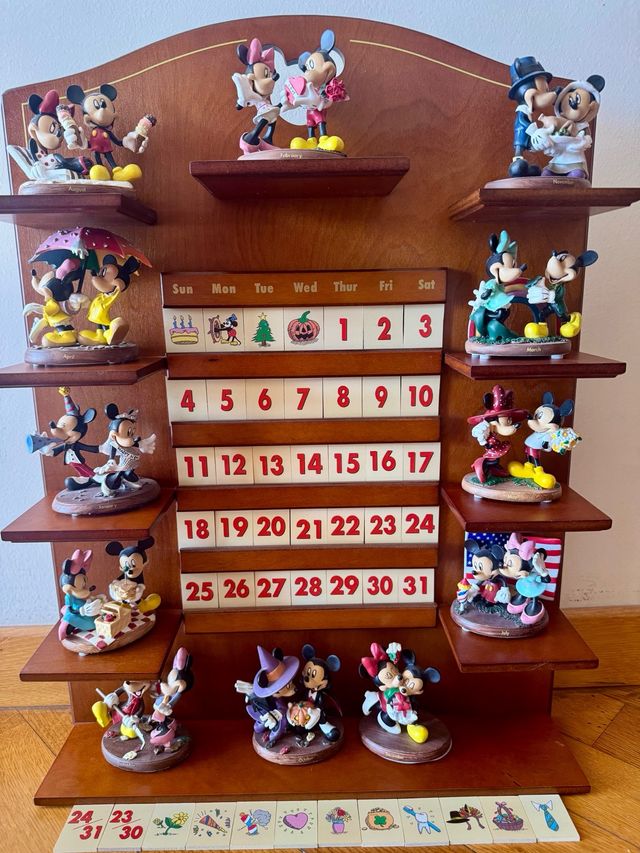 Dettagli del prodottoBellissimo calendario perpetuo da tavolo con statuine di Topolino e Minni Mouse, raffiguranti diversi momenti della coppia. Ogni mese è rappresentato da una scena diversa. Le statuine sono in ottime condizioni.