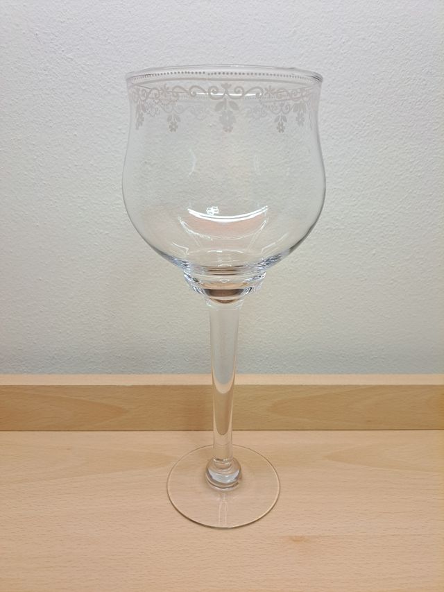 Dettagli del prodottoBellissimo calice con greca bianca! Può essere usato come portacandela o per altro uso decorativo.