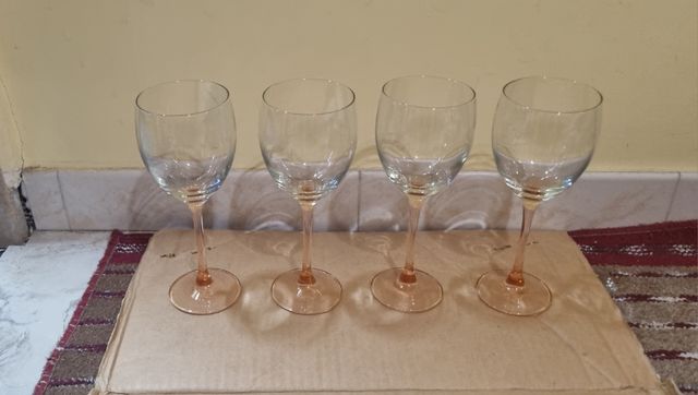 Dettagli del prodottoArticolo vintage anni '90, Luminarc, set di 4 calici con steli rosa, formato vino, in perfette condizioni e di ottima qualità. Nessun difetto da segnalare. Come nuovi.