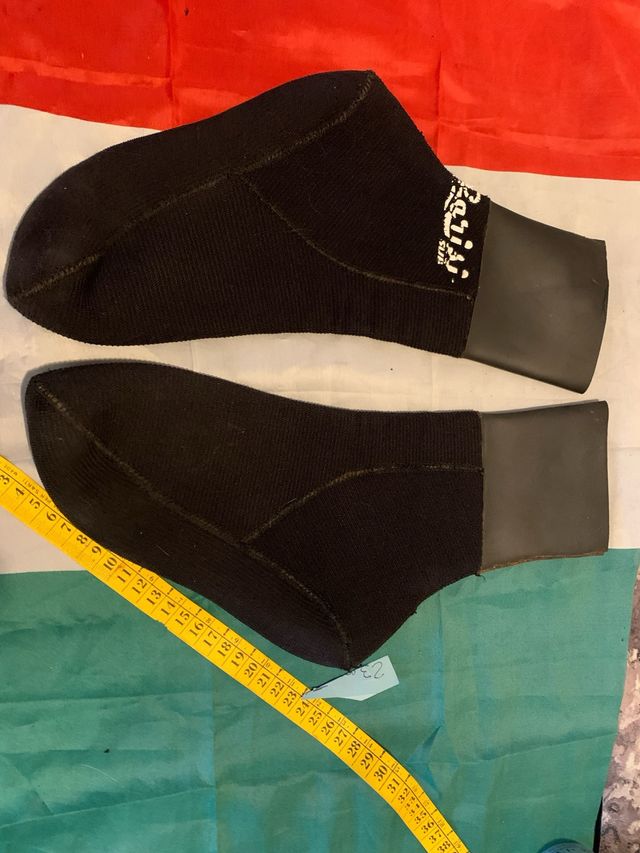 Calzari sub in neoprene, perfetti per le immersioni. Sono neri e sono in ottime condizioni. - Coppia di calzari. - Materiale: neoprene. - Colore: nero.