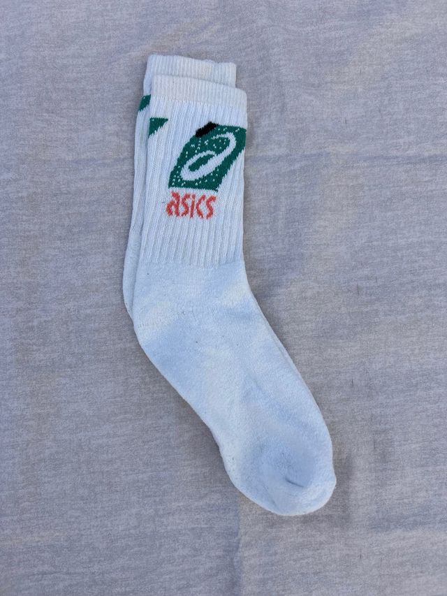 Dettagli del prodottoCalzini originali ASICS vintage, colore bianco con grafica “orange juice” 🍊 e “green apple” 🍏 super particolare!