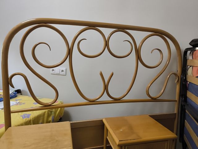 Dettagli del prodottoSplendido letto matrimoniale con testiera in legno e due comodini abbinati. Ideali per una camera da letto in stile country