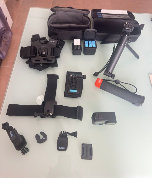 Dettagli del prodottoGoPro Hero 11 Black praticamente nuova, usata solo due volte. Condizioni impeccabili, senza urti o graffi, con schermi e lenti perfetti. Viene fornito con un kit completo di accessori: GoPro originale (porta cappellino, impugnatura flottante, treppiede estensibile e supporto per bici) e compatibile con la qualità (imbracatura toracica, fascia per la testa e supporto per zaino). Include 6 batterie nella custodia: 1 GoPro bianca originale + 2 GoPro enduro originali con doppio caricatore (le 2 batterie sono nuove), 3 Telesin blu, più triplo caricabatterie USB-C. Un pacchetto super completo per l'azione, perfetto per viaggi, sport e avventure.
