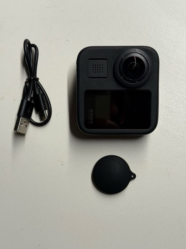 Fotocamera d'azione GoPro MAX a 360 gradi. - Nuove lenti anteriori e posteriori. - Schermo touch. - Include cavo USB-C.
