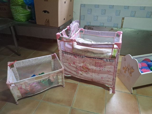 Dettagli del prodottoSet fasciatoio e culla per bambole, nei toni del rosa e con divertenti stampe.