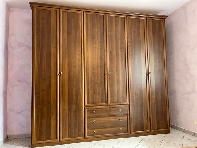 Camera matrimoniale completa composta da letto, comodini, cassettiera, specchio e Armadio.